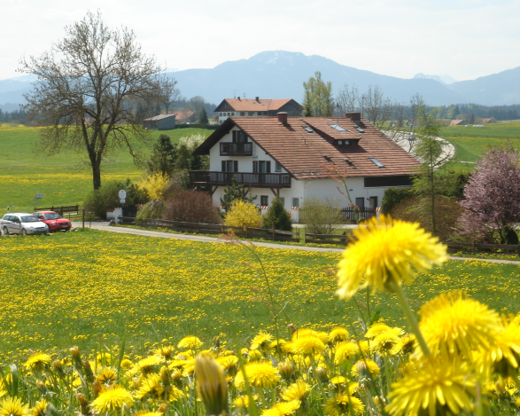 Unsere schöne Lage im Alpenvorland bietet Ihnen Natur pur und der Blick auf die Berge wird